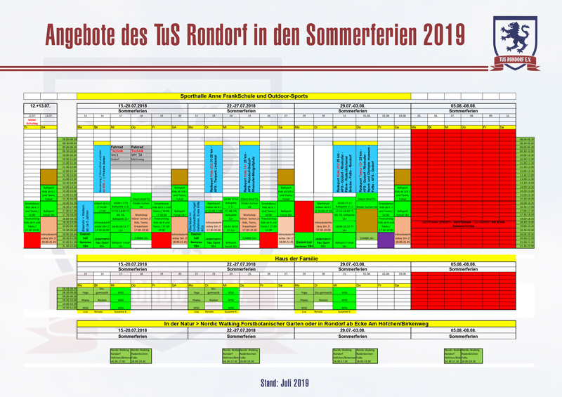 Der TuS Rondorf schließt seine Tore im Zeitraum 4.-6. Ferienwoche.