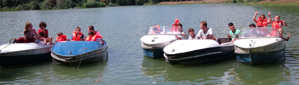 Der Rückweg verlief zügig und genauso diszipliniert, so dass es am Kalscheurer Weiher zur Belohnung noch ein Eis und eine Runde Bootfahren gab. Pro Boot ein Betreuer und die Kurzen in die Schwimmwesten gezwängt, dann konnte der Wasserspaß losgehen.