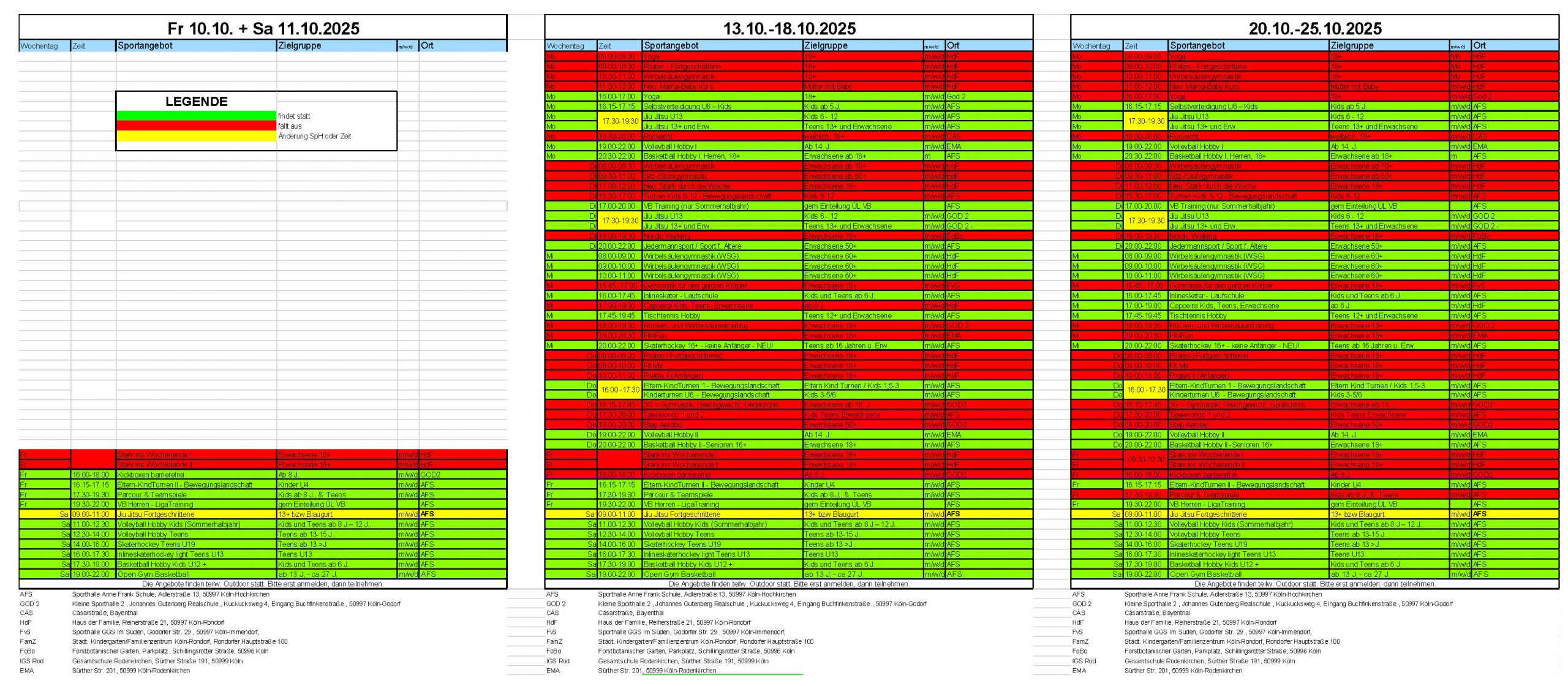 Das Komplette Programm von Freitag, den 10. Oktober, bis Samstag, den 25. Oktober 2025: