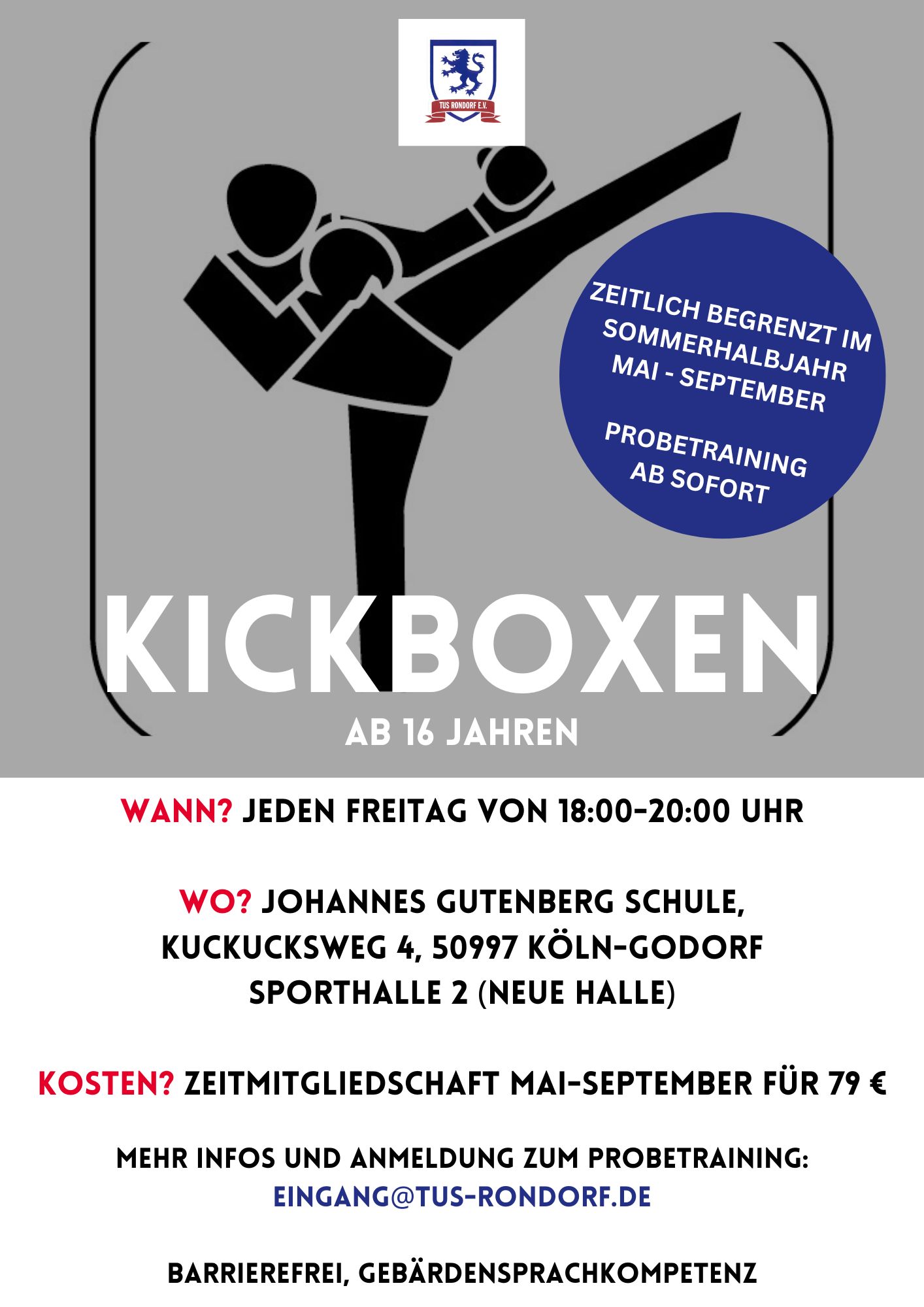 über info@tus-rondorf.de oder Kontaktformular